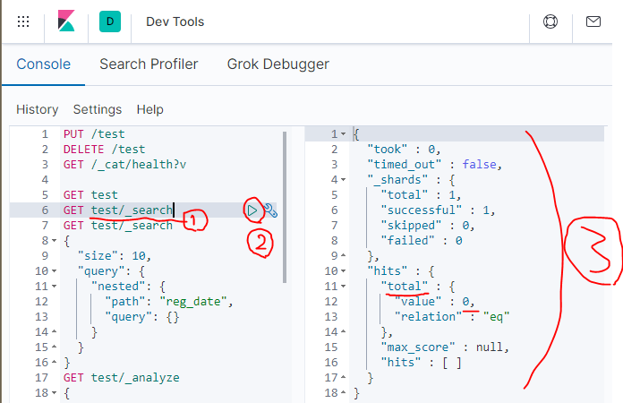test 테이블을 검색해보는 겁니다. total 갯수가 0 으로 표시되네요 아직 데이터가 아무것도 없어서 ㅇㅅㅇ