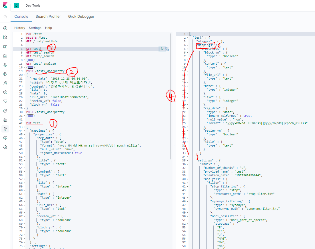 1번 : 매핑정보 넣어서 Index 생성(setting은 나중에 개인적으로 테스트해본거임)