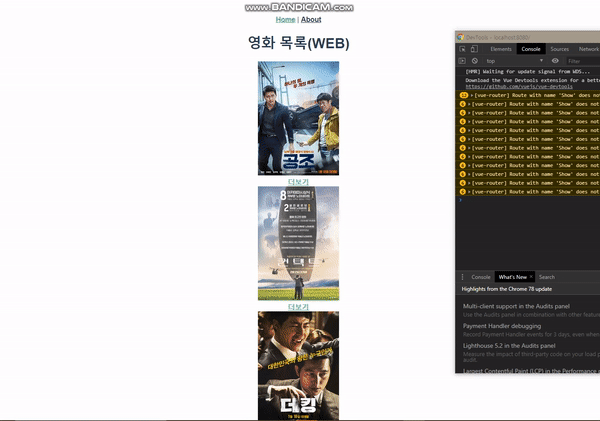 - 여기는 별게 없음 그냥 node에서 /api/movies 로 똑같은 api를 호출하고 구분을 위해 <h1> 태그에 모바일,웹 구분만 해두었다.
